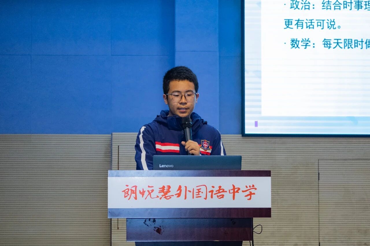 晨光微曦,朗悦慧的教学楼已回荡着朗朗书声。大会上,优秀学生代表牛梓淇深情分享了“日清计划”思维导图,从早读的任务切片到晚上的复盘反思,他把冲刺时间管理到了极致。他生动诠释:“真正的规划不是填满时间,而是为重点知识点亮坐标,让每一分钟都成为成长的助推器。”