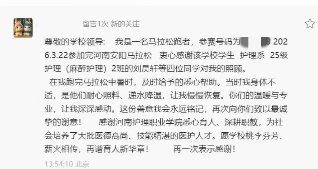 一条致我校官微的留言